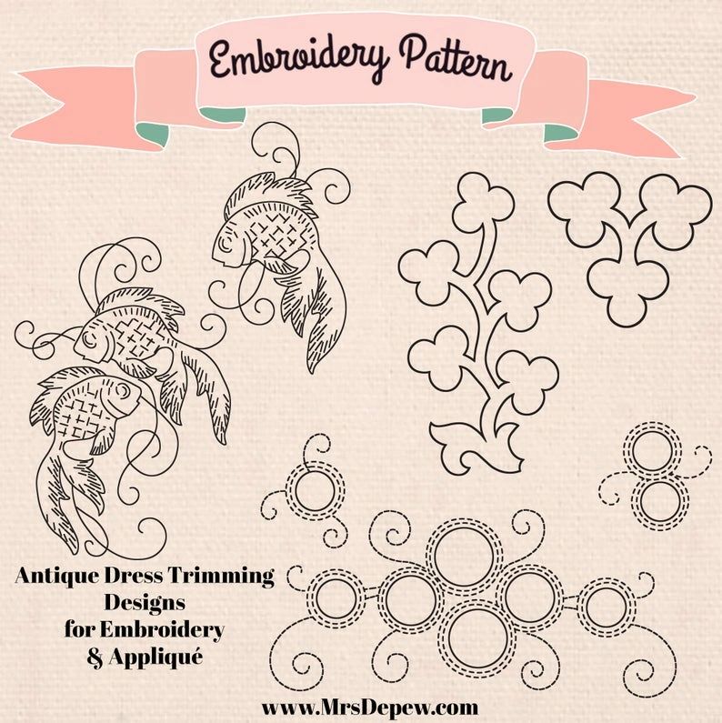 Vintage Style Embroidery Applique Design Motifs For Goldfish And More E 115 Instant Download